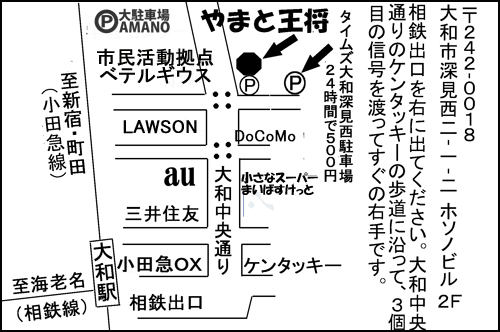 大和駅から徒歩で7〜8分です。ケンタッキーを右に